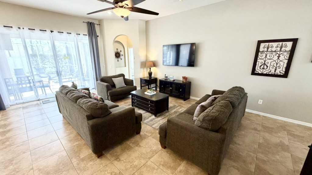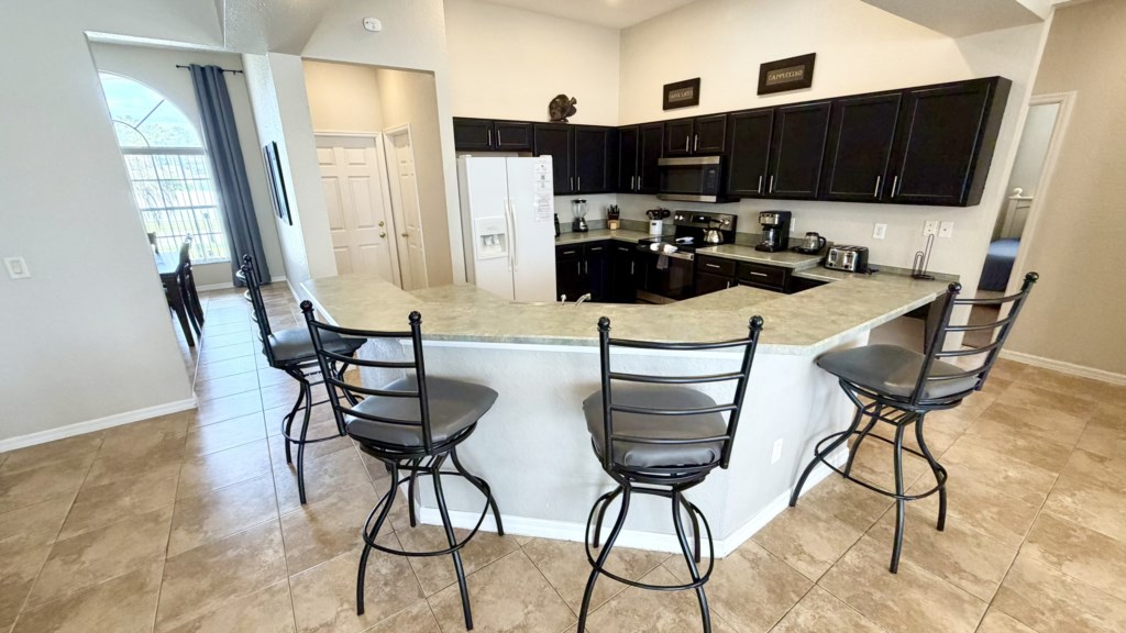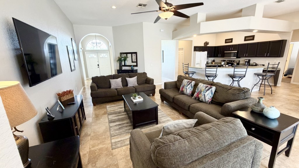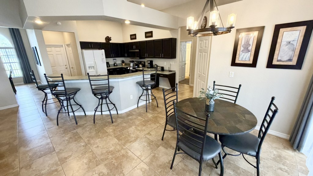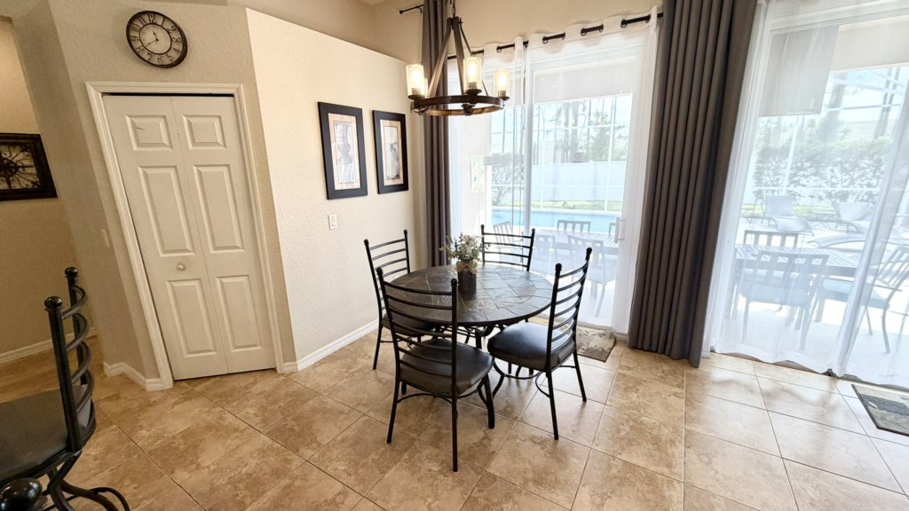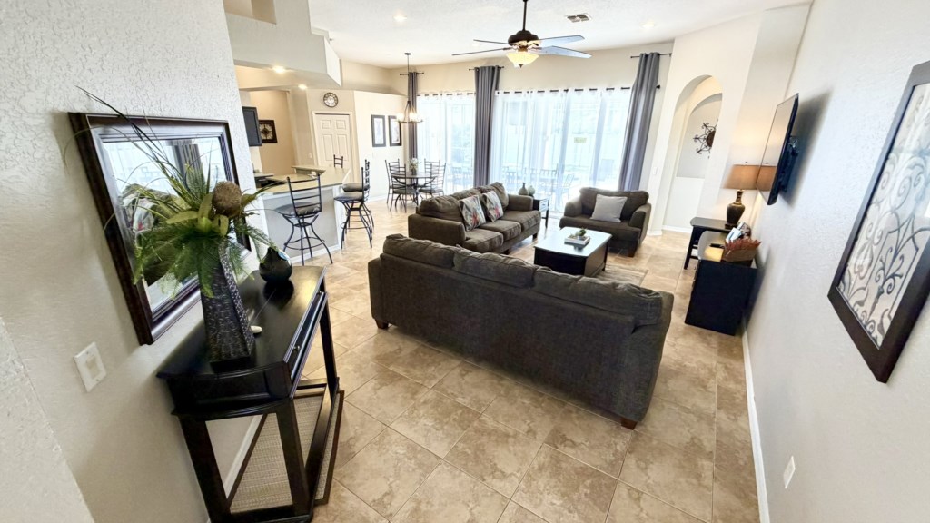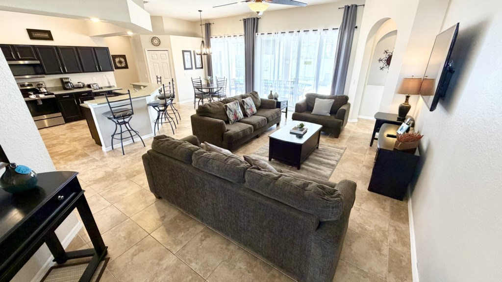 Situated on Highlands Reserve, a very popular golfing community on the US27 in Davenport, is this traditional privately owned Orlando vacation villa. Features include lots of space for you and your family to be able to relax together, 5 good-sized bedrooms, a games room and a large outside area with private pool, fencing on all sides for total privacy and a large undercover dining area with an outdoor TV. The community facilities are at the centre of Highlands Reserve, just 5 minutes’ walk from here, and include an outdoor swimming pool, tennis court and play area for small children. The fun and excitement of Disney World is just 20-25 minutes away from here, with SeaWorld and Discovery Cove just 30-35 minutes’ drive away. Universal Resorts will take approximately 35-40 minutes to reach via the I-4 Highway and this is where you can visit The Wizarding World of Harry Potter, the exhilarating Islands of Adventure and Volcano Bay water park. The vibrant US192 is a couple of miles north of the community and has an array of family restaurants catering to various tastes, budgets and dietary preferences. A bit closer to home is Berry Town Center, 2 minutes away by car or 15-20 minutes on foot, and this is where you will find a Publix supermarket and good selection of bars and restaurants.
