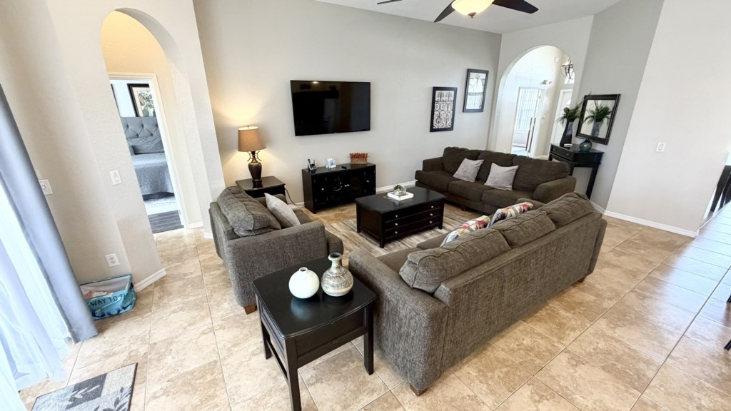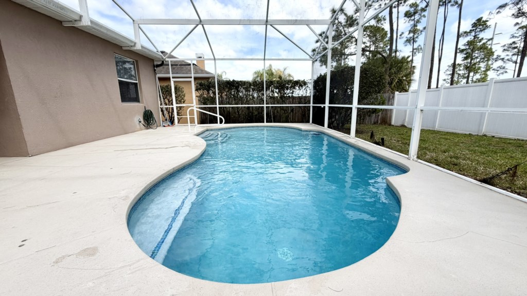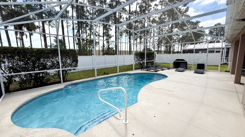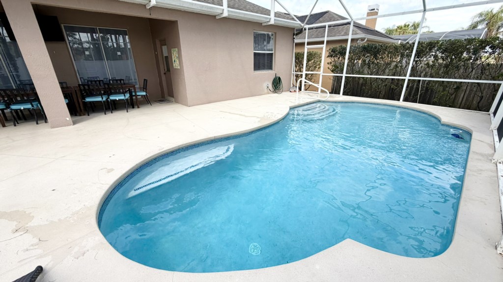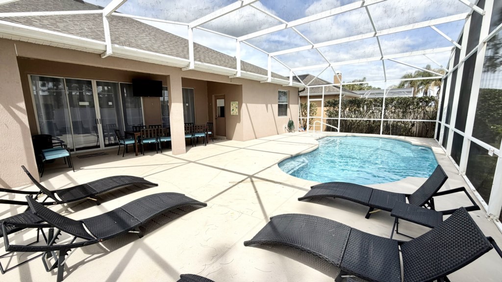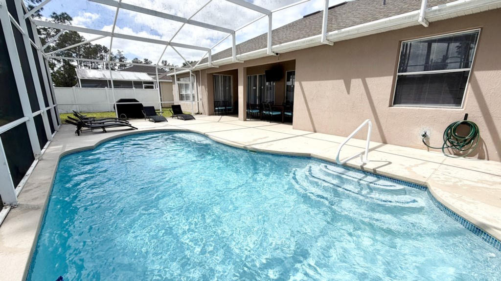 The completely secluded outdoor area has privacy fencing on all sides and a large private pool with easy access handrail and steps so that everybody gets the chance to splash around and have fun in the water. The covered dining area has seating for everybody and a pool deck TV so many hours can be spent enjoying a relaxing time with your family. Easy access to the bathroom next to Bedroom 3 will save any mad sprints through the house with wet feet.