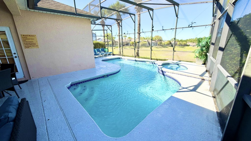 Situated midway between the ever-popular US192 and the I-4 Highway is this spacious 6 bedroom 4 bathroom Orlando vacation villa on the well-kept community of Calabay Parc in Davenport. With a completely private, west-facing pool and spa deck, scenic views, spacious living areas, games room and themed kids bedrooms, this villa is a perfect choice for your family holiday in Orlando. Calabay Parc is just 20 minutes away from Disney World, 25 minutes from SeaWorld and Discovery Cove and about 35 minutes away from Universal Resorts, including The Wizarding World of Harry Potter and Volcano Bay water park. Also just 35-40 minutes from your villa is Orlando's newest theme park, Epic Universe, with brand new and exciting rollercoasters and attractions. The lively US192 is a few miles from here and has hundreds of exciting restaurants to tempt your tastes buds and challenge any appetite!